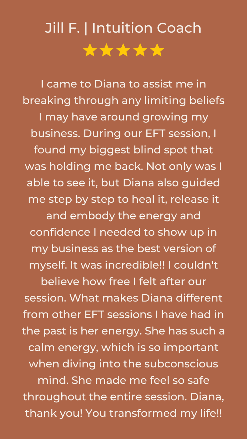 Early in her journey, she discovered the key role that the subconscious mind plays in our everyday behaviors, emotions, and ultimately, our success and well-being. So she specialized in subconscious reprogramming as well as its various modalities and techniques, such as EFT/tapping, Rapid Resolution TherapyÂŽ by Dr. Jon Connelly, hypnosis, and neurolinguistic programming.